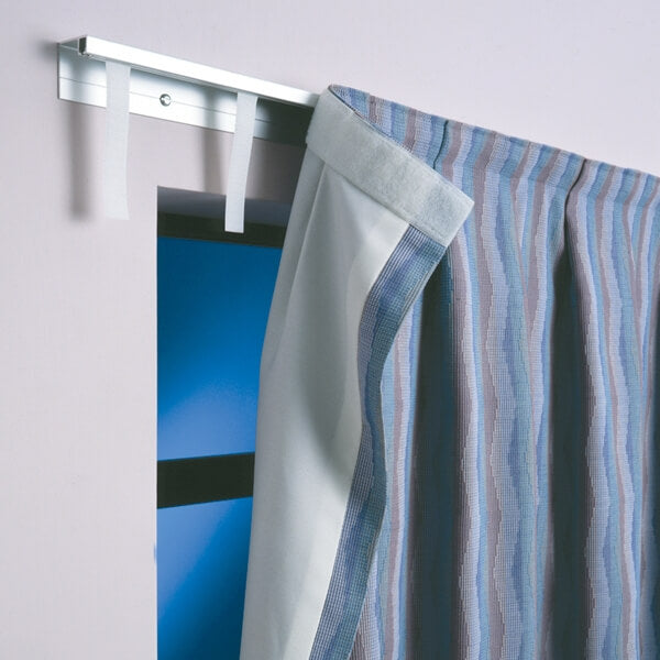 To install this product, simply mount the ceiling or wall track using tamper resistant hardware, insert the safety tabs, and then quickly attach the top edge of the drapery to the safety tabs.